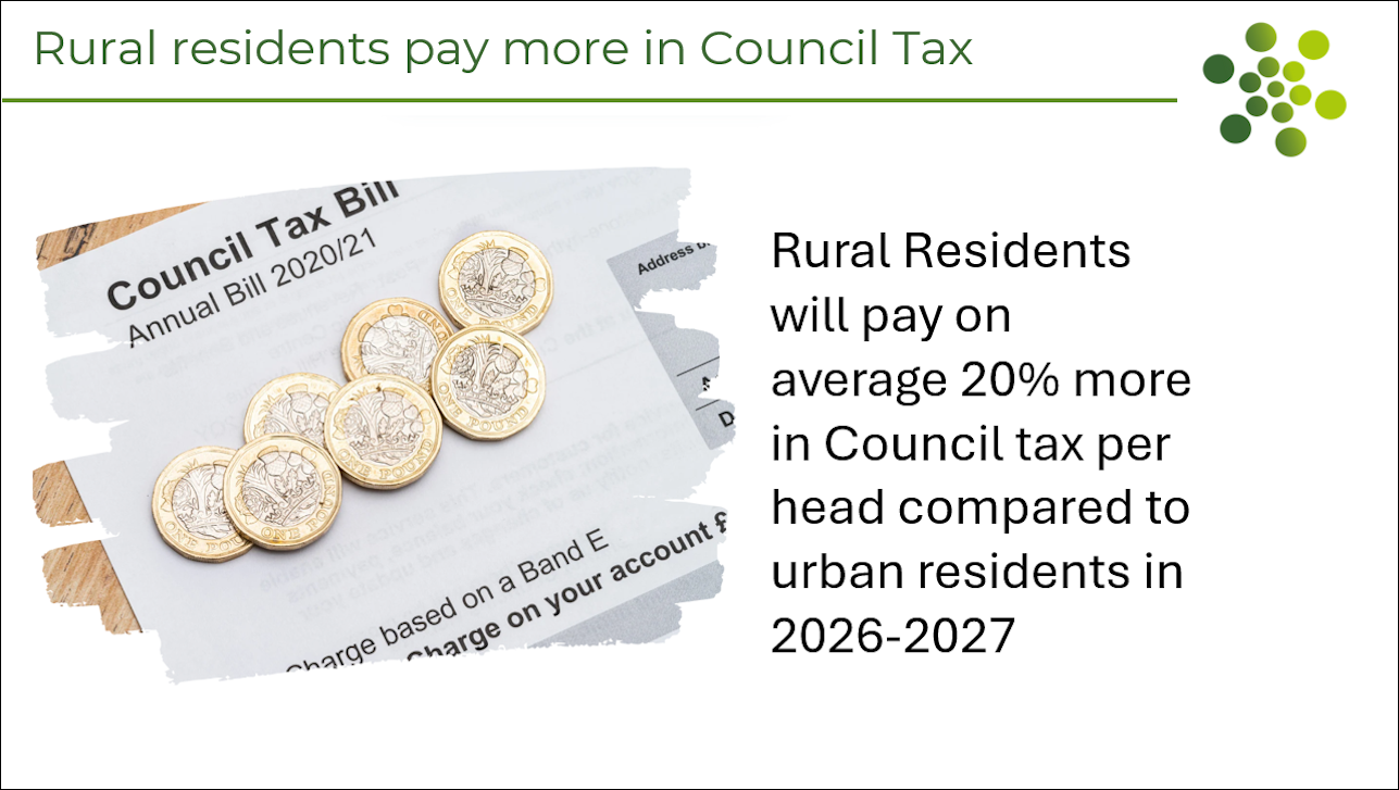 The proportion of Core Spending Power that is funded by Council Tax is hugely concerning. Core Spending Power includes Government Funding and the income raised by Council tax, nearly 75% of the increase in Core Spending Power is funded by assumed increases in council tax. The burden of funding public services will fall on rural residents.